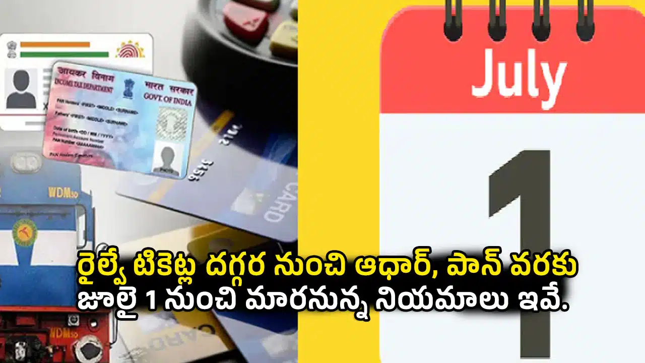ఇకపై ఆధార కార్డు లేకుండా కొత్త పాన్ కార్డు ఇవ్వరు. అలాగే పాన్ కార్డును ఆధార్ కార్డుతో కూడా లింక్ చేయడం తప్పనిసరిగా మారింది. దీనికోసం డిసెంబర్ 31, 2025 వరకు మాత్రమే గడువు ఉంది. అలాగే రైల్వే టికెట్ల బుకింగ్ మరియు చార్జీలలో కూడా జూలై 1 నుంచి కొత్త నియమాలు రానున్నాయి. ఏసీ మరియు నాన్ ఏసీ తరగతులకు సంబంధించిన రైల్వే టికెట్ ధరలు స్వల్పంగా పెరిగినట్లు తెలుస్తుంది. నాన్ ఎసి తరగతిలో కిలోమీటర్ కు టికెట్ పై ఒక పైసా అలాగే ఏసీ తరగతిలో కిలోమీటర్కు టికెట్ పై రెండు పైసలు చార్జీలు పెరిగాయి. అలాగే రైల్వేలలో ఇకపై వెయిటింగ్ టికెట్ల సంఖ్య పై కూడా పరిమితిని నిర్ణయించడం జరిగింది. ప్రతి తరగతిలో కూడా 25 శాతానికి మించి సీట్లలో వెయిటింగ్ టికెట్లను ఇకపై జారీ చేయరు.